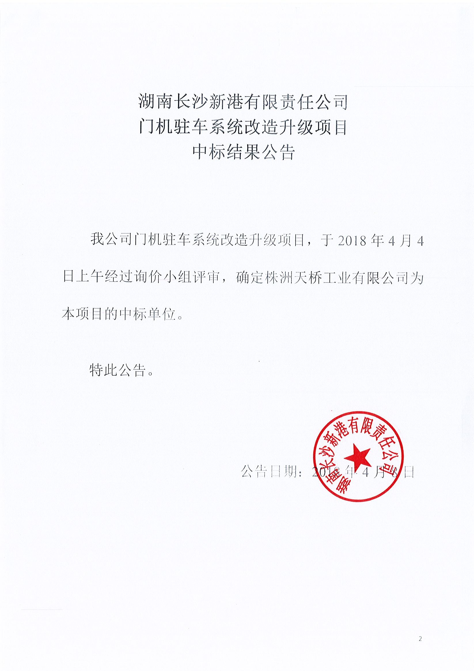 湖南長沙新港有限責任公司 門機駐車系統(tǒng)改造升級項目中標結果公告
