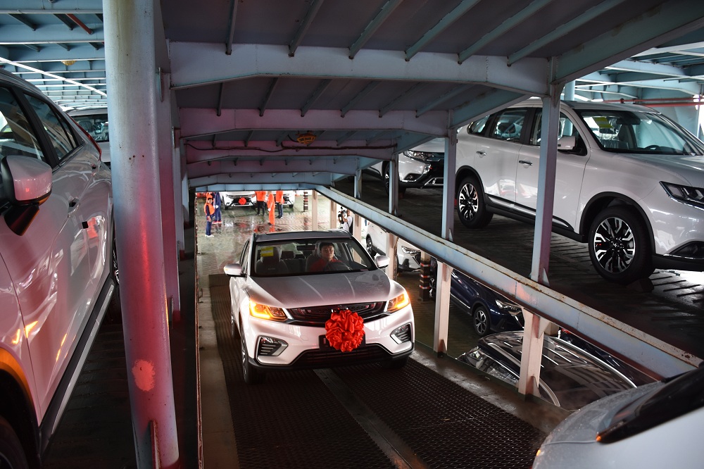 6月18日,隨著一聲汽笛鳴響,滾裝船“港達6號”輪駛離交通集團長沙新港汽車滾裝碼頭,船上裝載了廣汽三菱、廣汽菲克、北汽、吉利、馬自達等品牌的汽車近200臺,將于20小時后抵達武漢,輻射至川渝和華東地區(qū)。這是經(jīng)過一年半的緊張施工,克服諸多困難,在集團堅強領(lǐng)導(dǎo)下,長沙新港汽車滾裝碼頭發(fā)送的首條航班,標志著湖南省首個專業(yè)汽車滾裝碼頭正式投入試運行,徹底結(jié)束湘江商品汽車不能滾裝運輸?shù)臍v史。省人民政府辦公廳巡視員羅建軍,省水運管理局黨委書記、局長李建斌,市人民政府副市長邱繼興及行業(yè)相關(guān)部門領(lǐng)導(dǎo),各大港口、物流商和汽車主機廠嘉賓出席本次首航儀式。