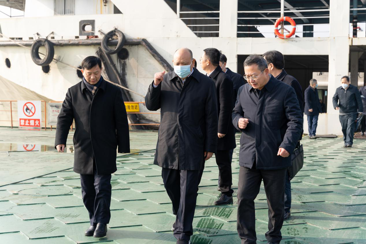 2月15日,副省長李建中調(diào)研湘江航道及港口建設(shè)發(fā)展情況來到長沙港霞凝港區(qū)實地考察。長沙交通集團黨委書記、董事長李建國,黨委副書記、董事、總經(jīng)理劉俊武在長沙新港陪同考察。