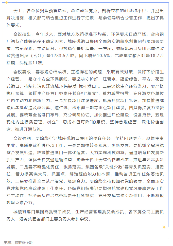 城陵磯港口集團召開一季度生產(chǎn)經(jīng)營分析會