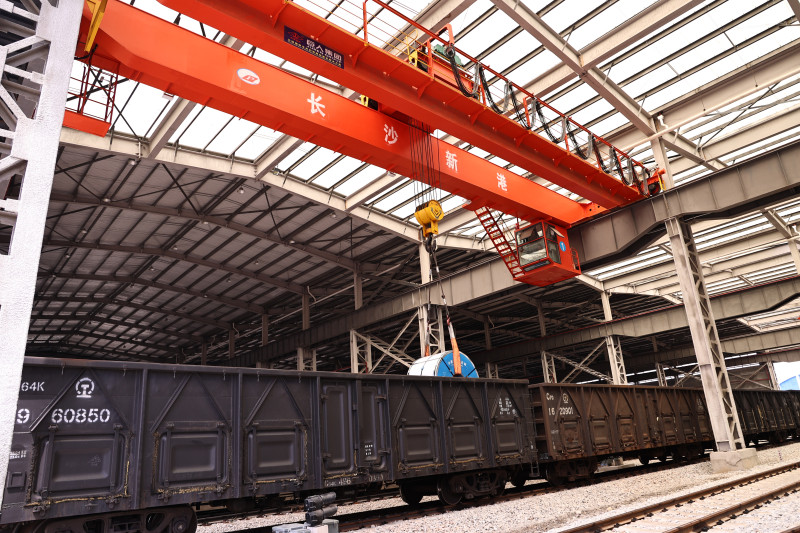 長(zhǎng)沙新港專用鐵路正在裝卸作業(yè)。 均為長(zhǎng)沙晚報(bào)全媒體記者 王志偉 通訊員 金添毅 攝 2月4日,一列由婁底漣鋼生產(chǎn)的工業(yè)鋼材共80車經(jīng)鐵路運(yùn)輸至長(zhǎng)沙新港,從碼頭裝船發(fā)運(yùn)至上海,當(dāng)天運(yùn)量達(dá)到4500噸。2023年,長(zhǎng)沙首條疏港專用鐵路在長(zhǎng)沙新港正式通車運(yùn)營(yíng),實(shí)現(xiàn)了港口鐵路與京廣線國(guó)鐵干線的無(wú)縫銜接,打通了長(zhǎng)沙水鐵聯(lián)運(yùn)“最后一公里”,多式聯(lián)運(yùn)降低了企業(yè)運(yùn)輸成本,深受市場(chǎng)歡迎。數(shù)據(jù)顯示,長(zhǎng)沙新港專用鐵路運(yùn)營(yíng)至今,共到發(fā)車數(shù)超3.1萬(wàn)車,貨物運(yùn)量超186萬(wàn)噸。