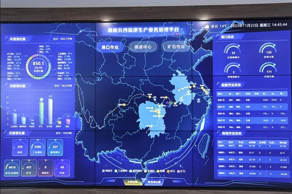 數(shù)字化轉(zhuǎn)型是長沙新港三年變革的鮮明注腳。2023年,長沙新港智控調(diào)度中心和生產(chǎn)業(yè)務(wù)管理平臺全面上線,實現(xiàn)船舶動態(tài)監(jiān)測、港口實時監(jiān)控等智能化管理;2024年,“電永磁鐵吊具”等設(shè)備投產(chǎn),有效提升裝卸效率,降低人力成本;2025年,依托信息化平臺構(gòu)建“數(shù)字港+多式聯(lián)運”模式,提高貨物周轉(zhuǎn)效率,縮短客戶報港、提貨流程。 綠色轉(zhuǎn)型同樣步履鏗鏘。長沙新港在綠色發(fā)展上狠下功夫,認真守護好一江碧水,在實現(xiàn)“雙碳”目標方面起到示范性作用。港口累計投入近2000萬元推進環(huán)保升級:散貨封閉堆場實現(xiàn)“零揚塵”,岸電設(shè)施覆蓋所有泊位;港口充電樁業(yè)務(wù)穩(wěn)步推進,促進社會運力結(jié)構(gòu)向低碳發(fā)展;散貨碼頭綠化帶復(fù)綠升級,打造綠色港口,描繪生態(tài)底色。 市場突圍:多元業(yè)態(tài)打開增長空間