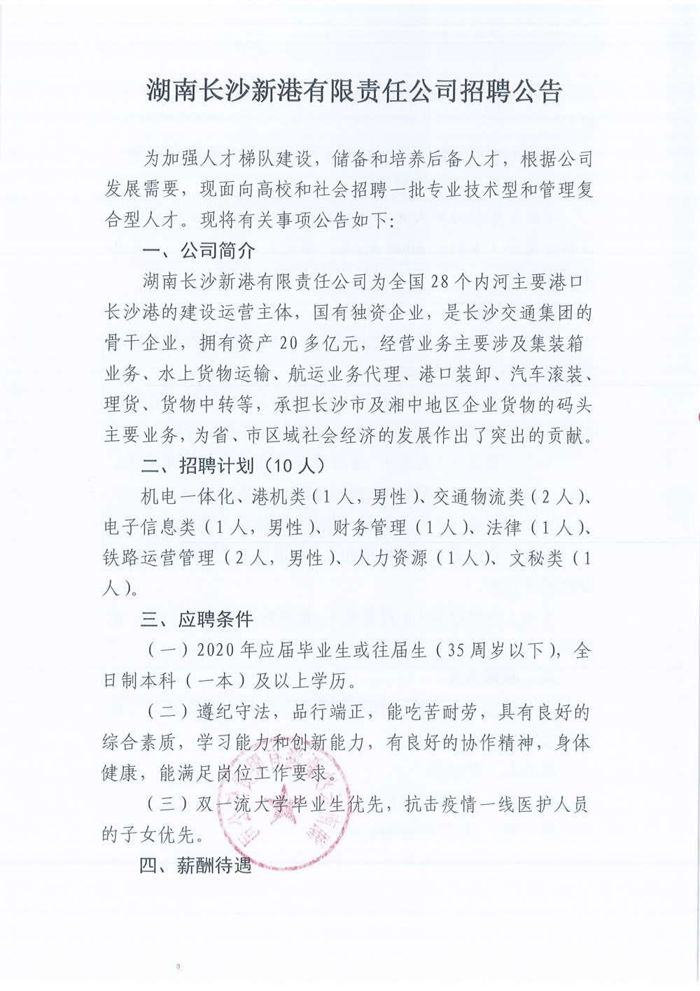 湖南長(zhǎng)沙新港有限責(zé)任公司招聘公告