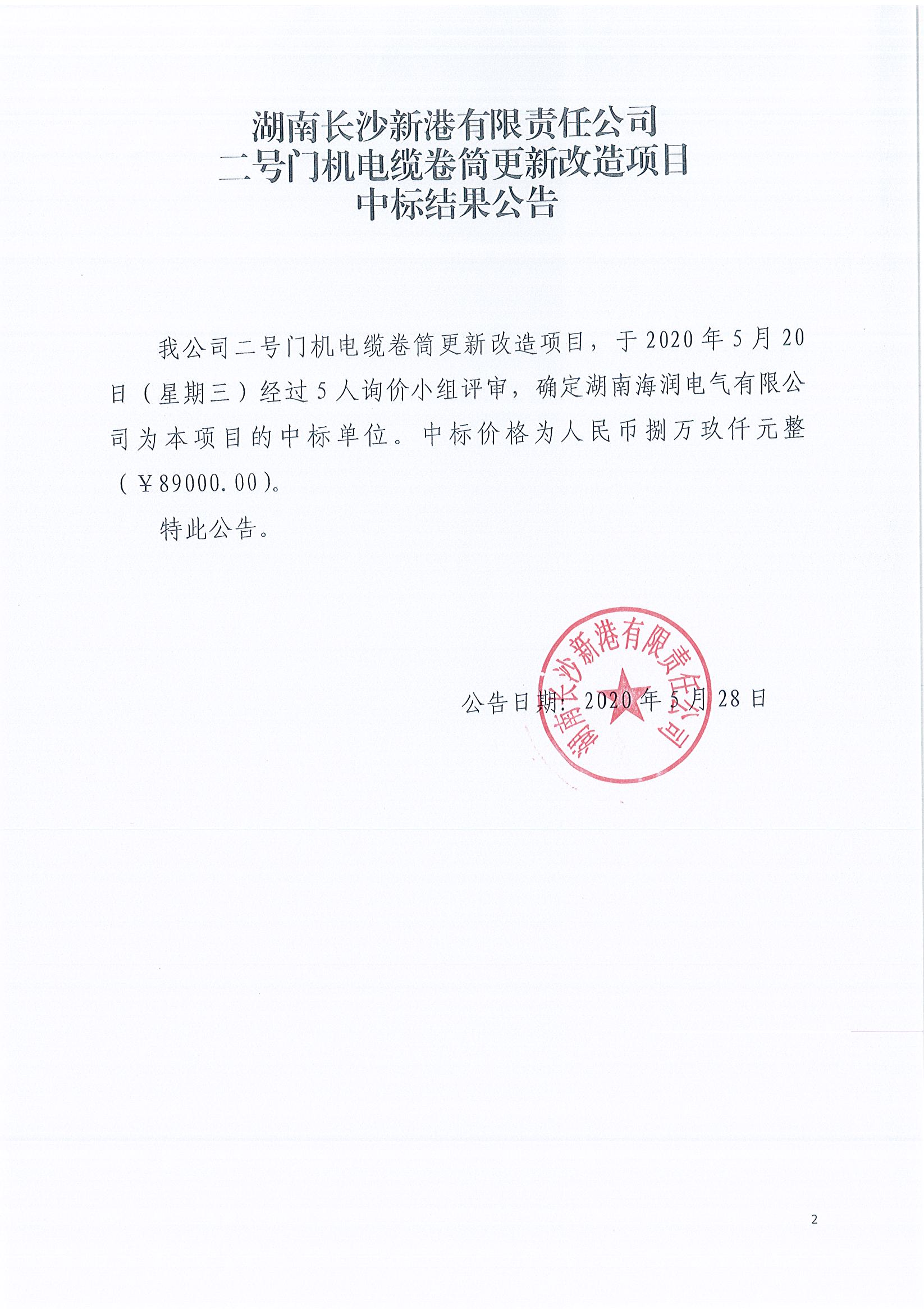 二號(hào)門機(jī)電纜卷筒更新改造項(xiàng)目《中標(biāo)結(jié)果公告》