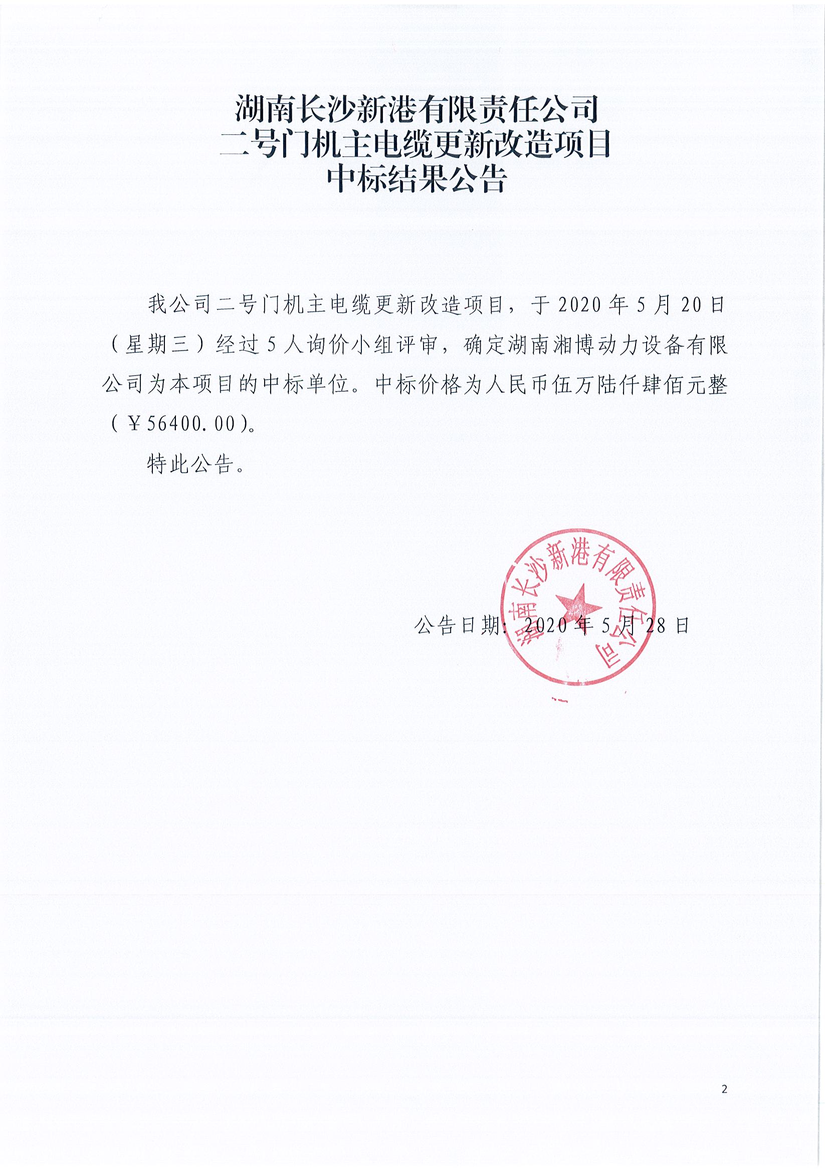 二號門機主電纜更新改造項目《中標結果公告》