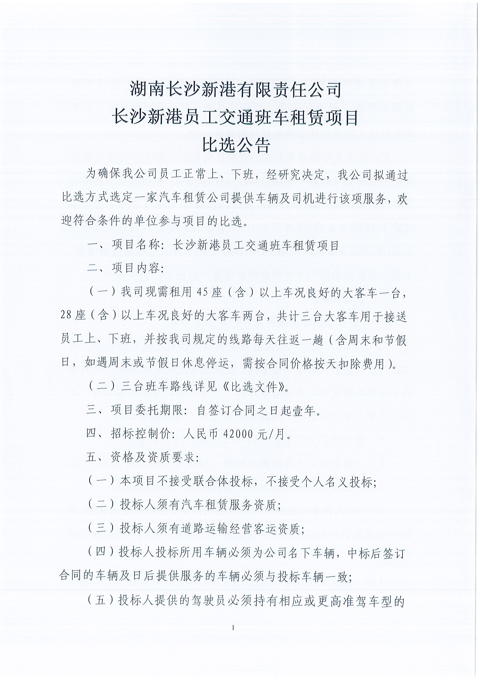 《長沙新港員工交通班車租賃項目》比選公告