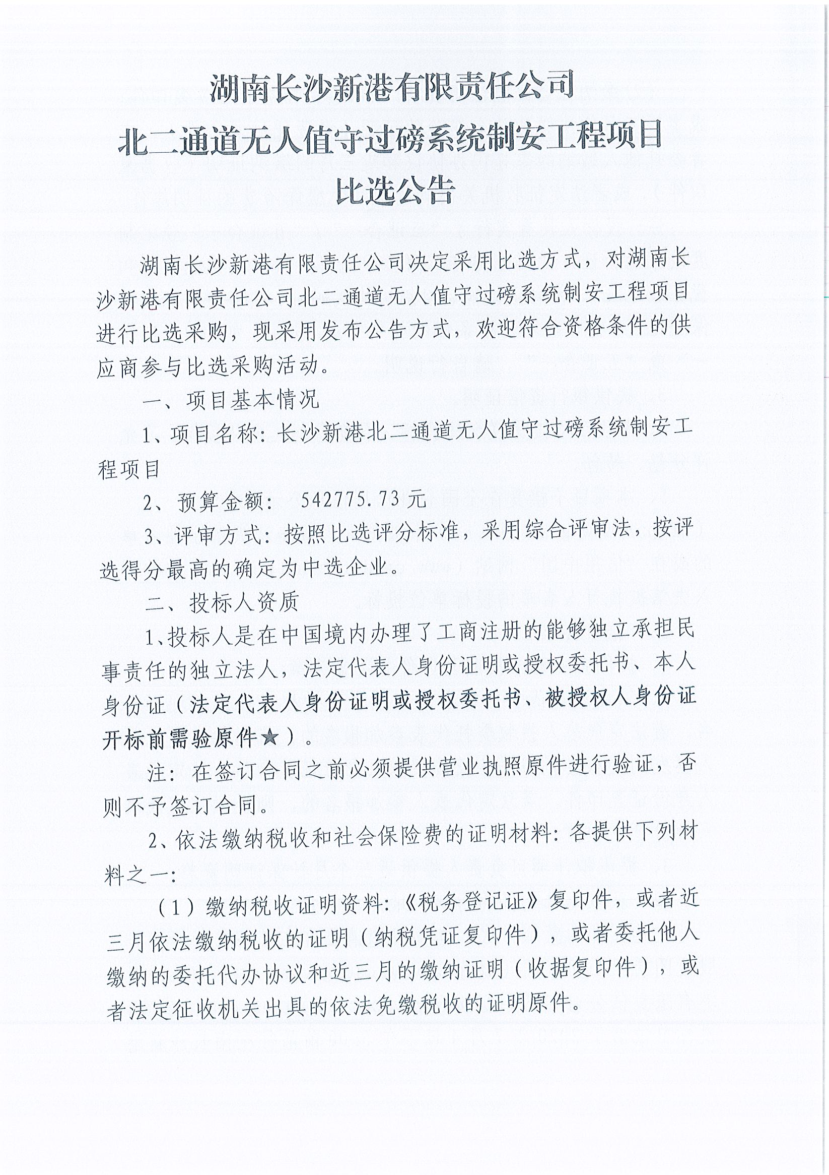 湖南長沙新港有限責任公司北二通道無人值守過磅系統(tǒng)制安工程項目比選公告