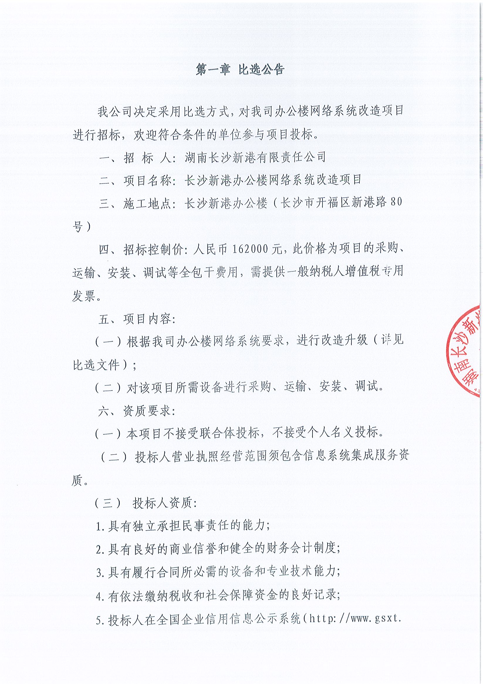 湖南長沙新港有限責(zé)任公司辦公樓網(wǎng)絡(luò)系統(tǒng)改造項(xiàng)目招標(biāo)公示