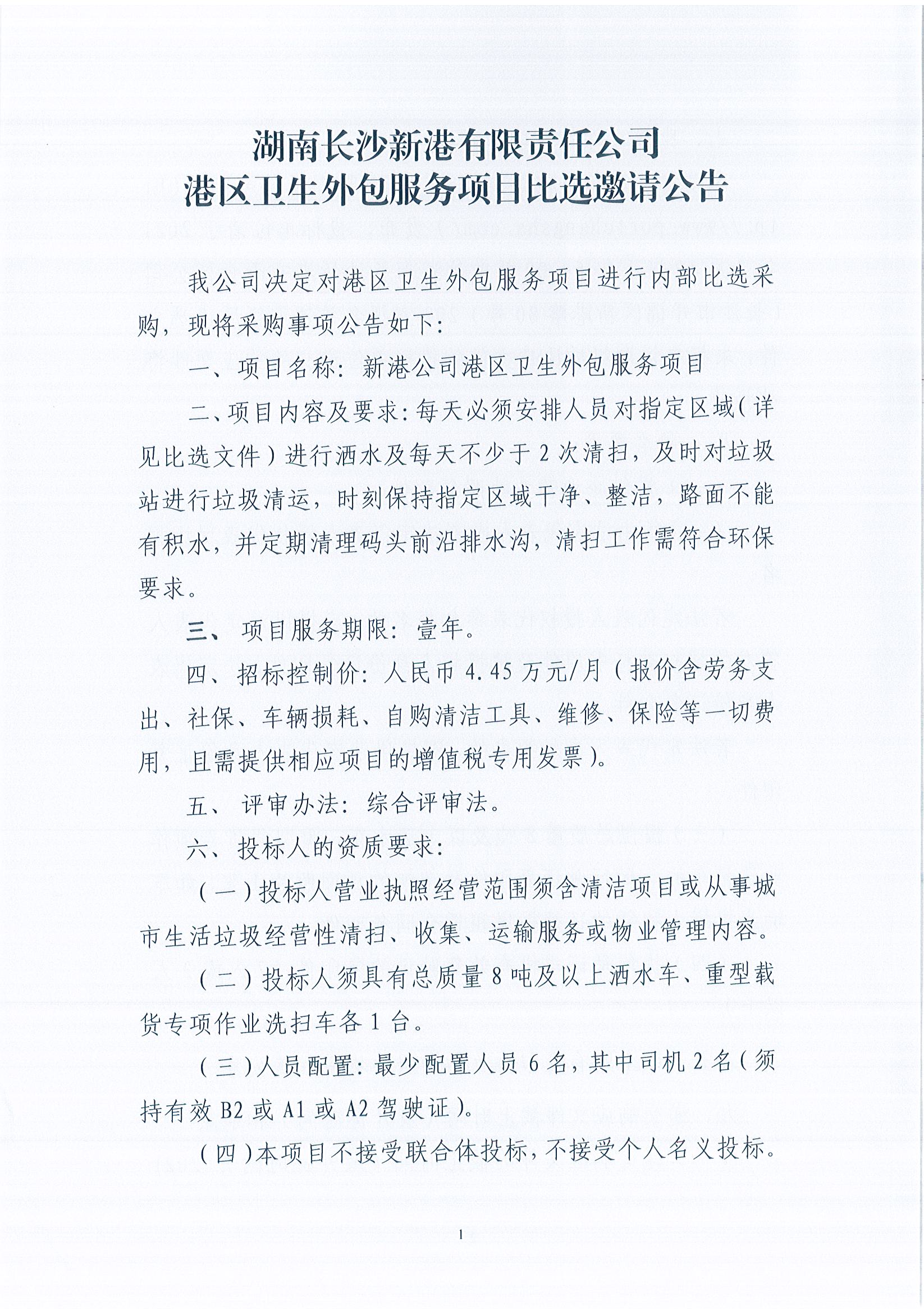 湖南長沙新港有限責任公司港區(qū)衛(wèi)生外包服務項目比選邀請公告