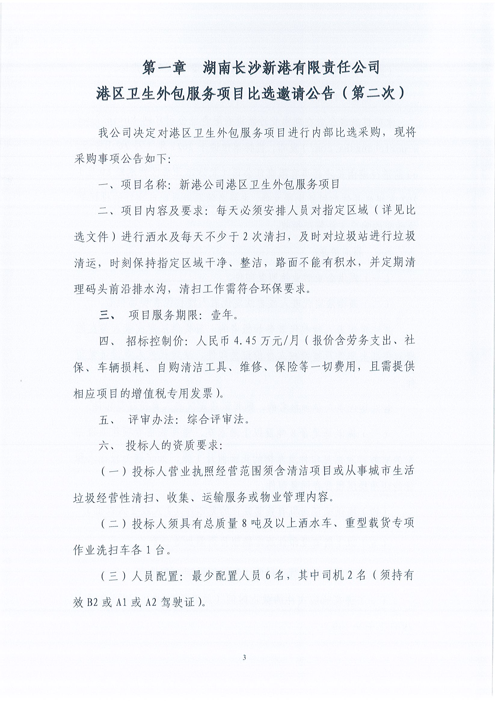 湖南長沙新港有限責(zé)任公司港區(qū)衛(wèi)生外包服務(wù)項(xiàng)目比選邀請公告(第二次))