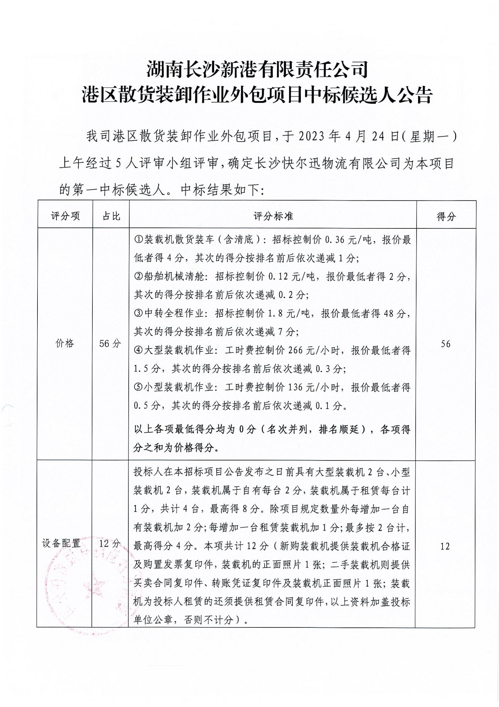 港區(qū)散貨裝卸作業(yè)外包項(xiàng)目中標(biāo)候選人公告