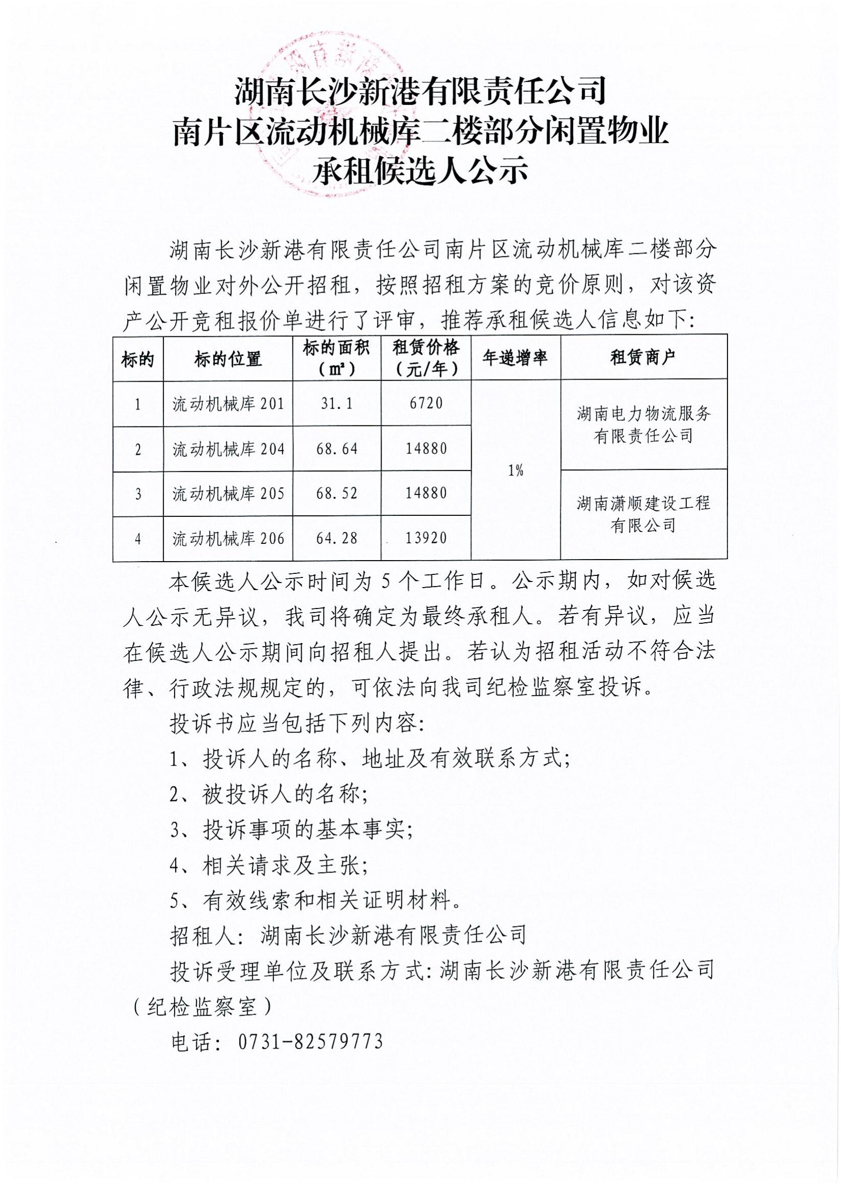 南片區(qū)流動機械庫二樓部分閑置物業(yè)承租候選人公示