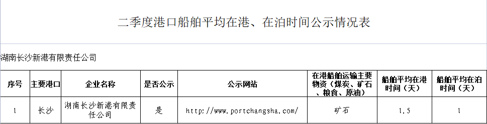 二季度港口船舶平均在港、在泊時(shí)間公示情況表