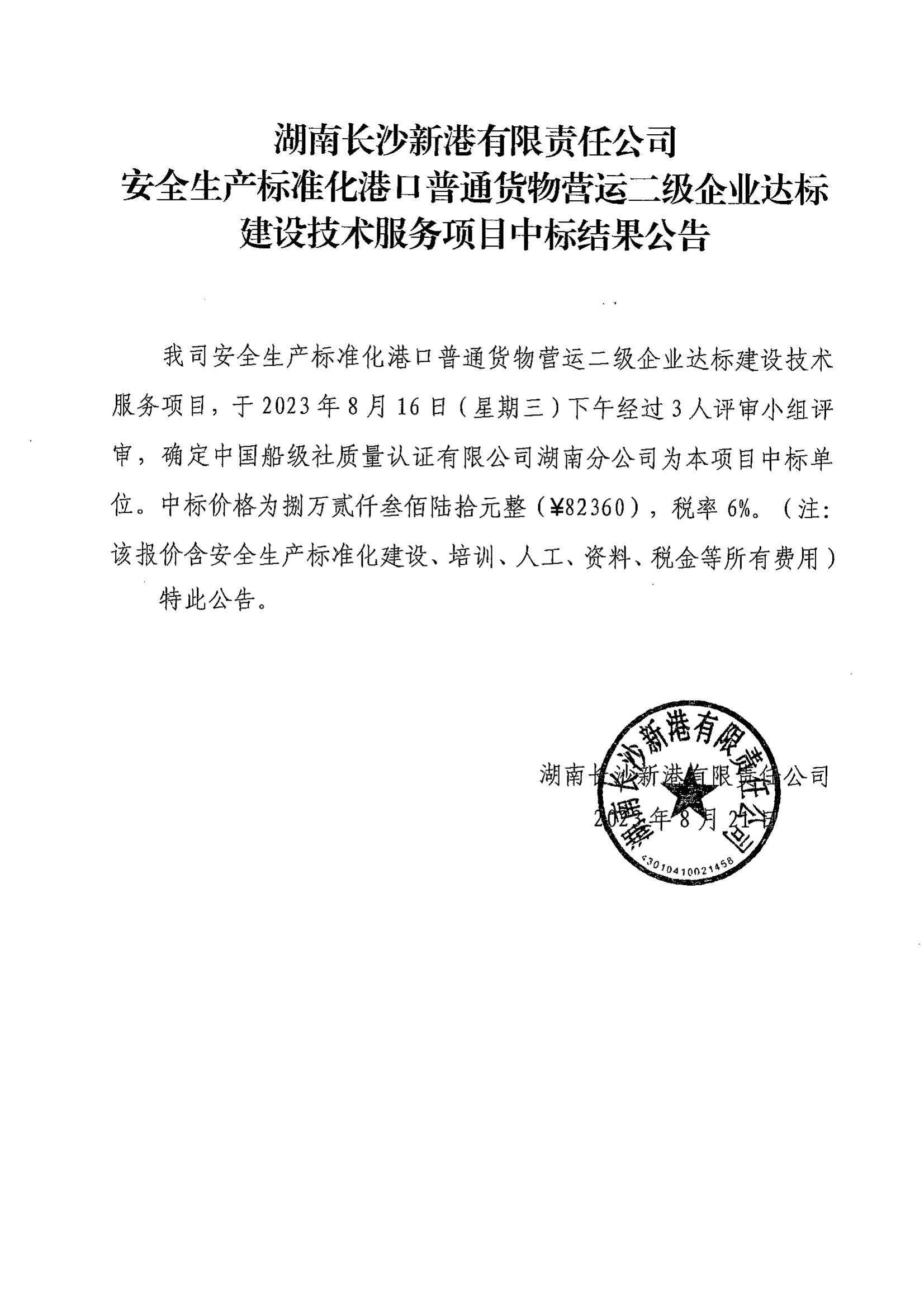 安全生產(chǎn)標(biāo)準(zhǔn)化港口普通貨物營運(yùn)二級(jí)企業(yè)達(dá)標(biāo)建設(shè)技術(shù)服務(wù)項(xiàng)目中標(biāo)結(jié)果公告