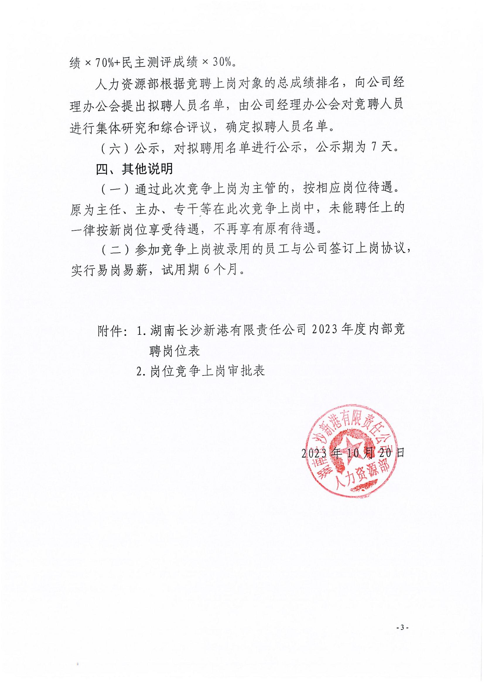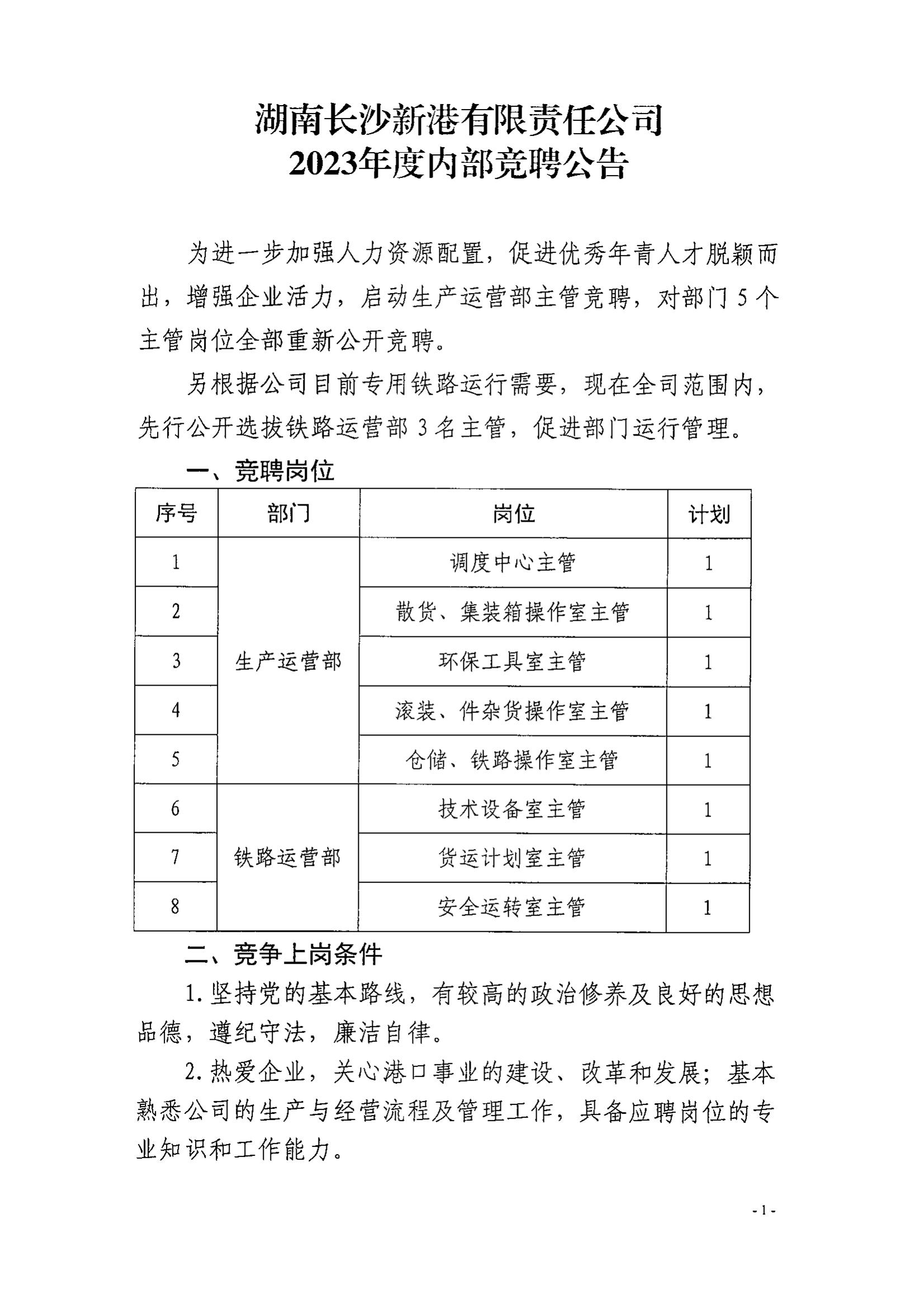 新港公司2023年度內(nèi)部競聘公告