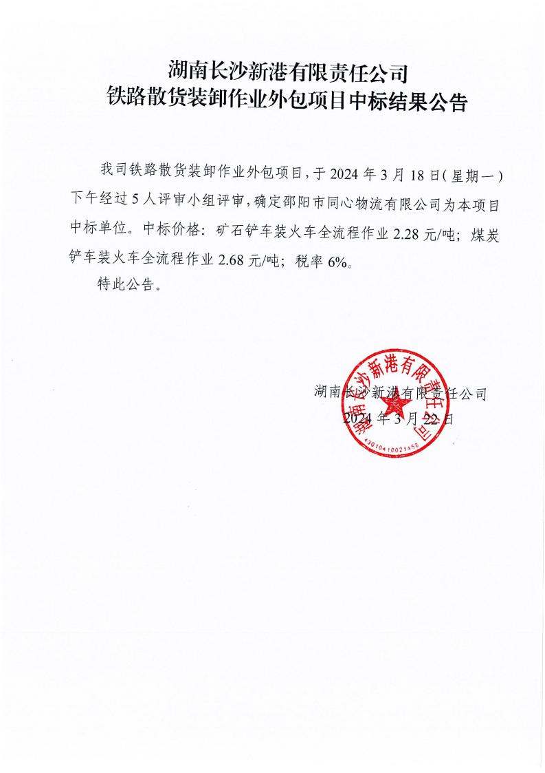 鐵路散貨裝卸作業(yè)外包項(xiàng)目中標(biāo)結(jié)果公告