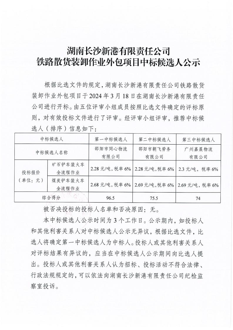 鐵路散貨裝卸作業(yè)外包項(xiàng)目中標(biāo)候選人公示